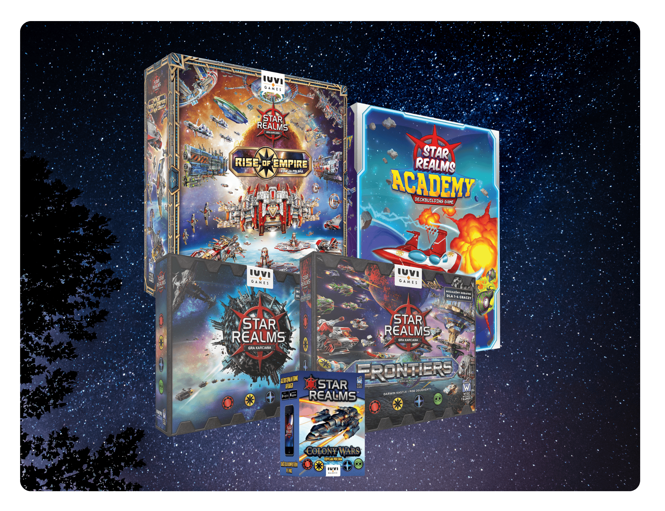 Star Realms: Colony Wars, który może być używany jako samodzielna gra dwuosobowa lub rozszerzenie do Star Realms, które pozwala włączyć do rozgrywki jednego albo dwóch kolejnych graczy.