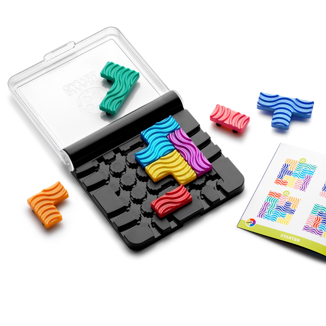 IQ Flow to fascynująca gra logiczna z serii SmartGames, która rzuca wyzwanie Twojej wyobraźni przestrzennej. W tej edycji klasyczne układanki ustępują miejsca kolorowym, geometrycznym falom. Twoim celem jest nie tylko wypełnienie planszy, ale zrobienie tego w sposób harmonijny i precyzyjny. Czy uda Ci się okiełznać wszystkie elementy?