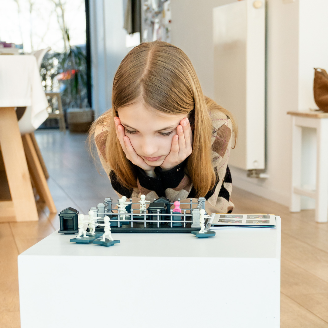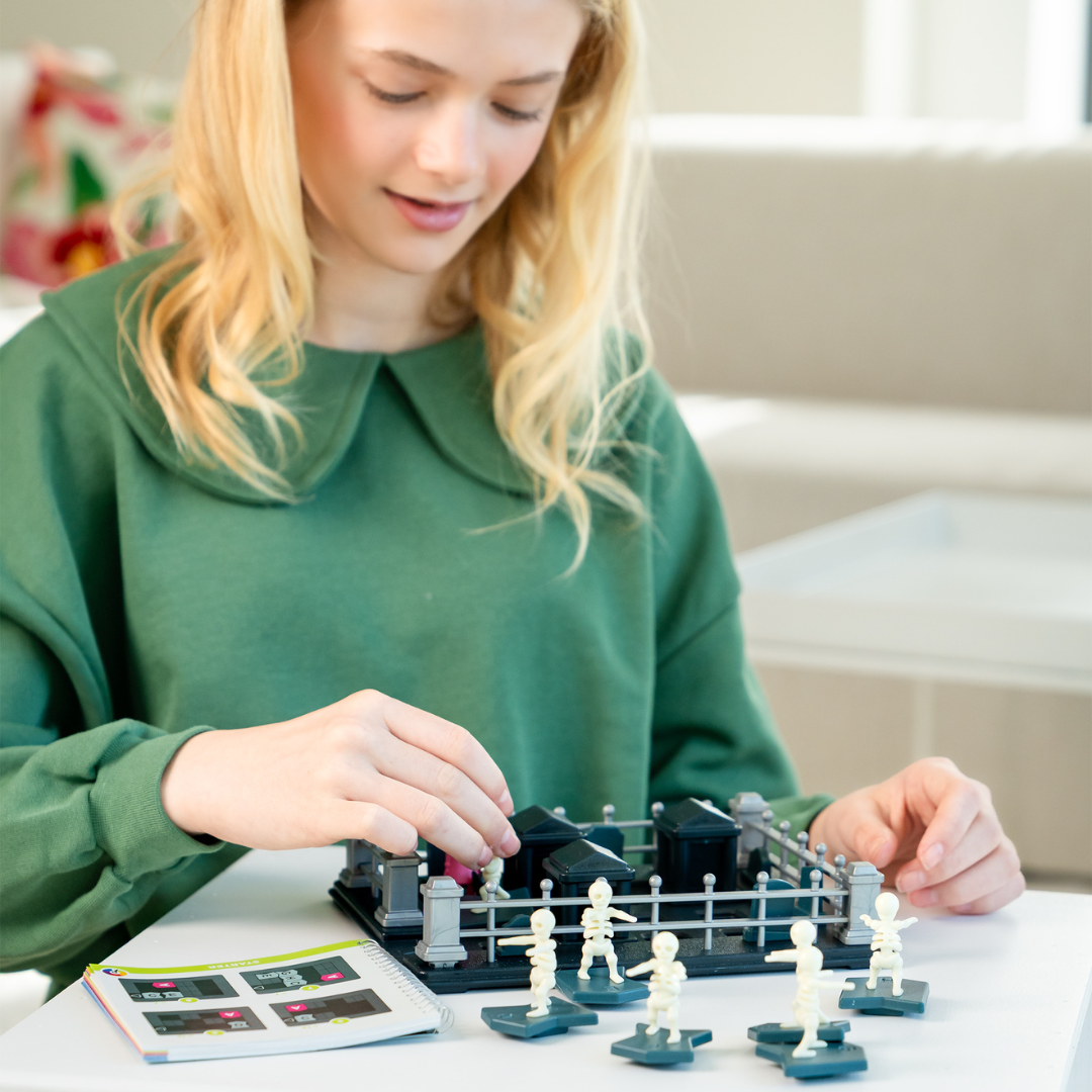 Może szukanie zaginionego kota na cmentarzu po północy nie było najlepszym pomysłem… Mroczna noc spowiła świat, a straszliwe zjawy wypełzły z cienia! Pomóż dziewczynce uciec z upiornego cmentarza, lawirując sprytnie między złowieszczymi grobowcami i hordami szkieletów! Czy wystarczy Ci sprytu, by przechytrzyć kościotrupy i opuścić to nawiedzone miejsce? Ta wciągająca łamigłówka wystawi na próbę Twoją inteligencję i zapewni dreszczyk emocji na każdym kroku!
